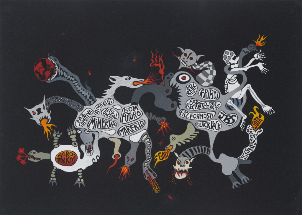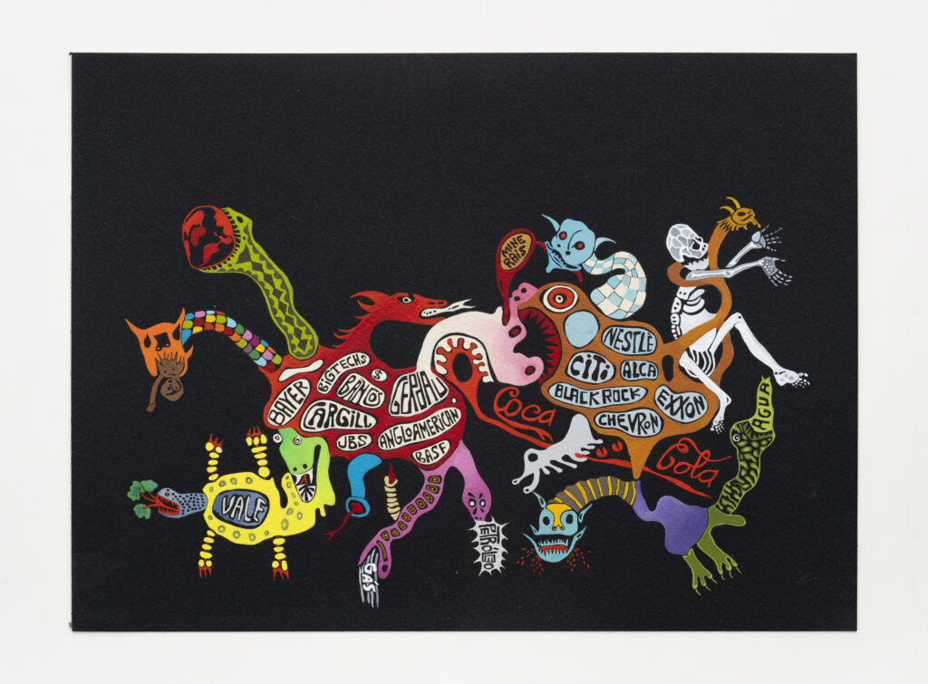 Como bem pontuou Lisette Lagnado, “nas manifestações que antecederam esse momento histórico em defesa da democracia, os biomas saíram em bloco: cavala-marinho, vagalume, sapa, polvo, cobra, girassol, cogumelo vermelho, camaleoa, onça, água-viva, vitória régia… Ameaçadas fisicamente, juridicamente, espiritualmente, suas nações pediram socorro. Não sendo ouvidas pelas vias institucionais de praxe a selva e sua matilha deslocaram-se para os centros de decisão de seu porvir.” (p. 148)