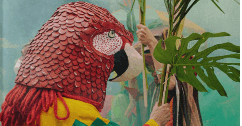Ajuntamento de seres humanos que reivindicam os direitos da natureza, esta proposta de carnaval cívico cosmopolítico começou a tomar as ruas de São Paulo em agosto de 2021, promovendo uma espécie de performance coletiva nômade. Com pessoas representando animais e plantas, mobilizando uma estética muito inspirada por Hélio Oiticica, Oswald de Andrade e o Teatro Oficina, além de nutrida pela antropologia de Eduardo Viveiro de Castro e sua noção da Floresta de Cristal, as Reviravoltas de Gaia materializaram-se também em um livro homônimo, organizado por Mariana Lacerda e Rivane Neuenschwander (ed. Cobogó, n-1, 2023, 240 pgs), e no filme curta-metragem Eu Sou uma Arara, cujo título refere-se a um dito do povo indígena Bororo (do Mato Grosso).