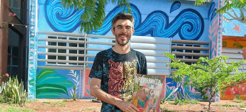 E, para terminar, eu trago um exemplo brasileiro que é muito caro e que é muito atual. Nós tivemos recentemente um movimento social que emergiu na pandemia de Covid-19 aqui no país, que tomou as ruas em várias ocasiões de manifestações públicas, chamado Reviravolta de Gaia, que gerou esse belo livro, assim como centenas de fotografias tiradas nas ruas, sobretudo de São Paulo, onde os manifestantes não apenas carregavam seus cartazes com palavras de ordem, reclamando contra o ecocídio no Brasil, fazendo demandas de justiça pelos crimes ambientais que ocorreram em Minas Gerais, colocando essa demanda de colocarmos freio no garimpo legal, no desmatamento da Amazônia, etc. E esse movimento social, então, gerou esse livro fotográfico com muitos artigos no final, inclusive de Danowski, de vários pensadores importantes.